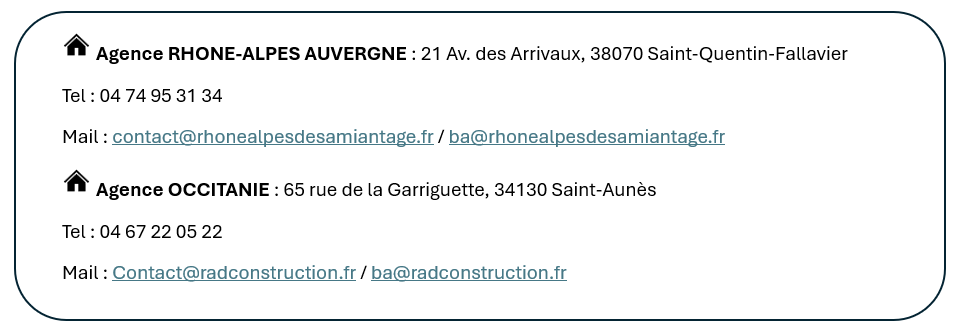 RAD Construction est dédiée à fournir des services de désamiantage et de couverture de haute qualité, tout en assurant la sécurité de nos clients. Avec une équipe formée et expérimentée, nous garantissons un accompagnement durant toutes les étapes de votre projet.